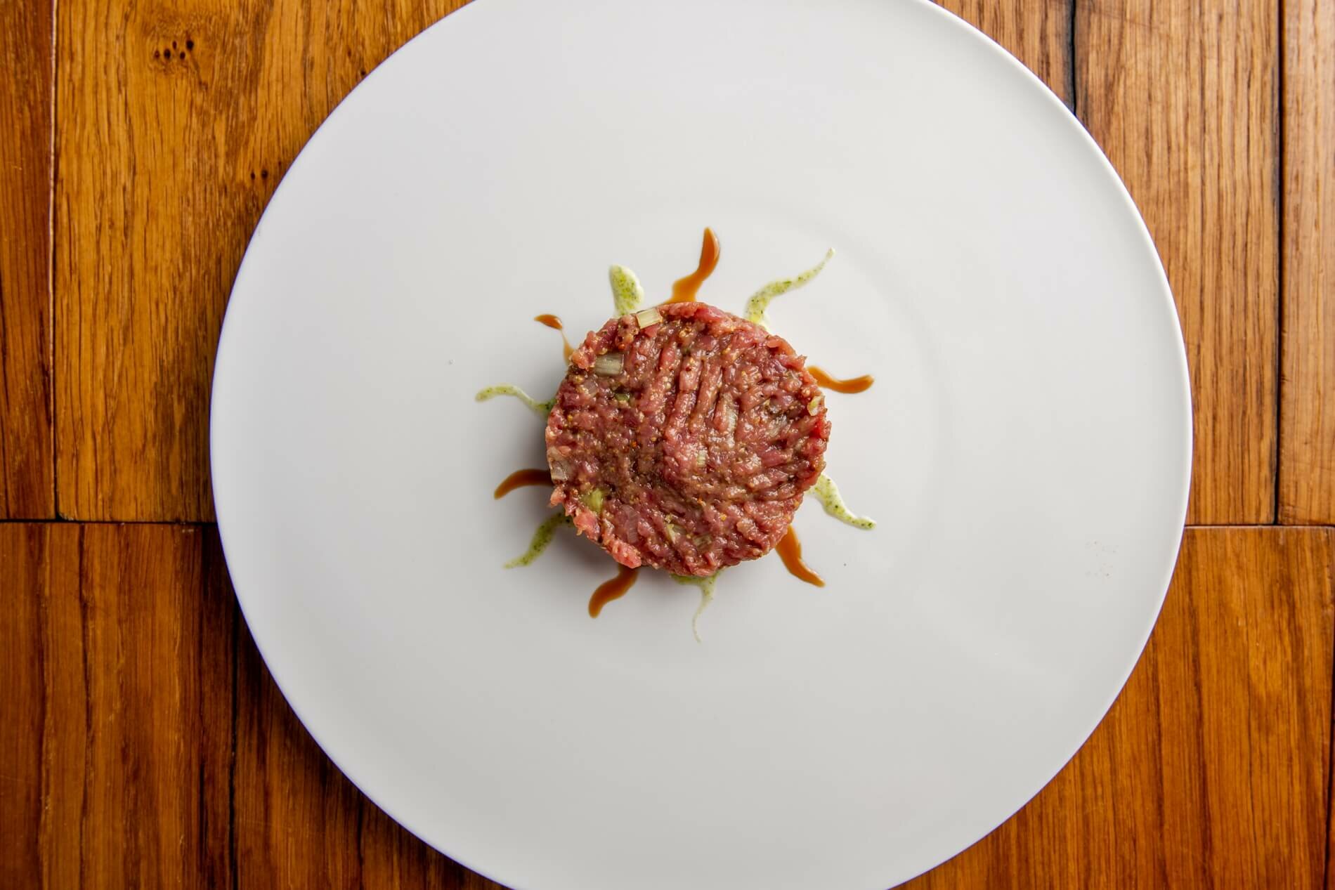 Bistec-tàrtar de vedella "bencriada" picat a ganivet